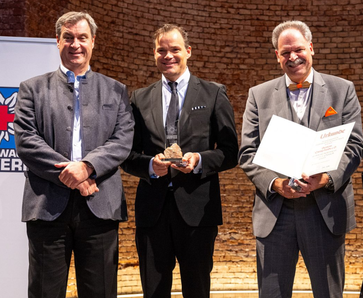 In the context of this far-reaching support, Siemens Caring Hands e.V. was honored by the Bavarian Mountain Rescue Association with a mountain rescue edelweiss for special services. The rare alpine plant was presented to our colleagues by Bavarian Prime Minister Markus Söder at a reception in the Allerheiligen Hofkirche of the Munich Residenz.