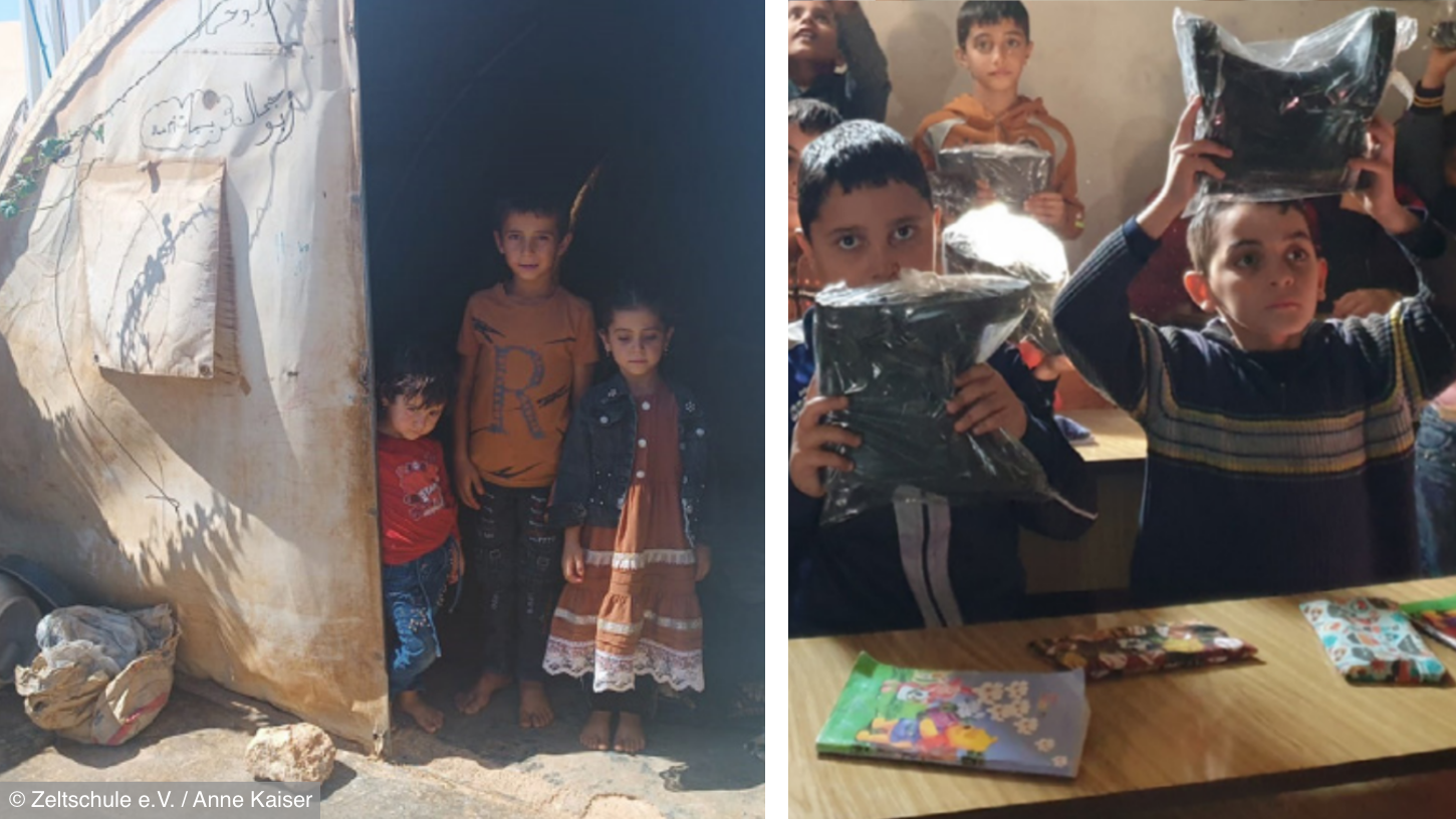 Immediately after the rescue of children and their families, the most important priority was to provide basic food supplies and rebuild the affected tent schools. Jacqueline Flory, founder and CEO of Zeltschule e.V. reported, that school is the center of the children’s lives and that the weeks without lessons were such a burden for them that their teachers – as soon as the temperatures were warmer – tried to hold lessons outside as often as possible. “The rituals at school, belonging to a community, working together towards a better future is an important safety net for the children concerned,” says Flory.